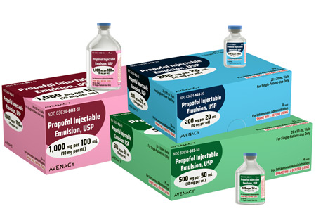 Avenacy's Propofol Injectable Emulsion, USP is available in 200 mg/20 mL, 500 mg/50 mL, and 1,000 mg/100 mL single-dose vials. In line with Avenacy’s mission to champion patient safety and streamline patient care, Propofol Injectable Emulsion, USP will feature the Company’s highly differentiated packaging and labeling to support accurate medication selection.