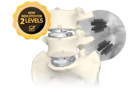 Because prodisc L is the only lumbar TDR device with FDA approval for two-level use, the updated coverage applies exclusively to the use of the prodisc L device. The prodisc system is designed to replace the diseased disc while allowing continued movement at the treated level, consistent with maintaining spinal segmental function when clinically appropriate.