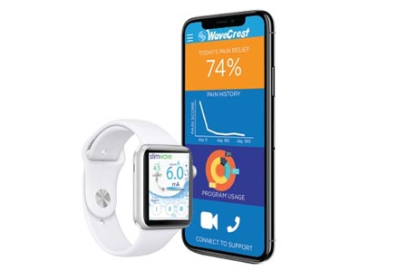 WaveCrest Mobile allows a patient to use an iPhone, iPod touch®, or Apple Watch to adjust their pain relief therapy. This is the first FDA-cleared software that allows the AppleWatch to control a neuromodulation device implanted inside the body. The software is designed to be easy to use and secure. WaveCrest Mobile enables pain sufferers to fine-tune the power level, visualize battery life, and modify programs that were pre-programmed by their clinician to control pain without opioids.